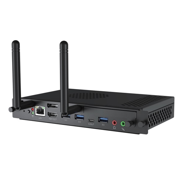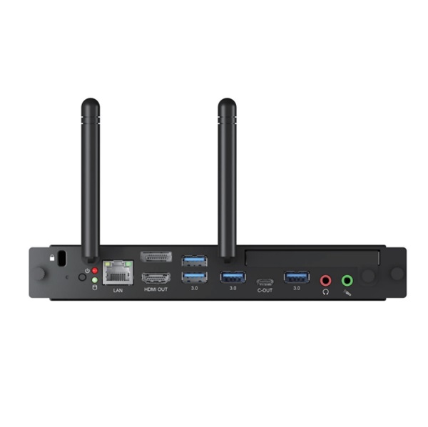 - Lắp đặt dễ dàng: Sử dụng giao tiếp 80Pin OPS Interface, cho phép tháo lắp nhanh chóng vào khe cắm phía sau màn hình tương tác mà không cần đi dây phức tạp.